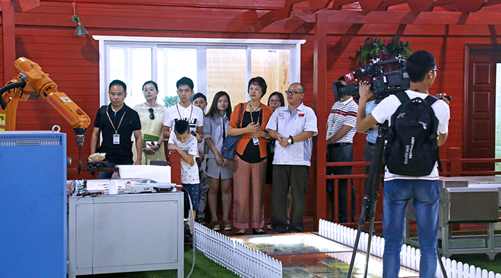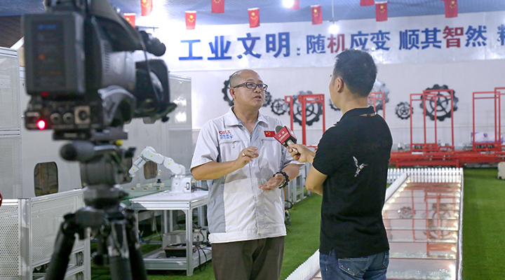 匯興智造鐘董給記者朋友介紹公司發(fā)展歷程